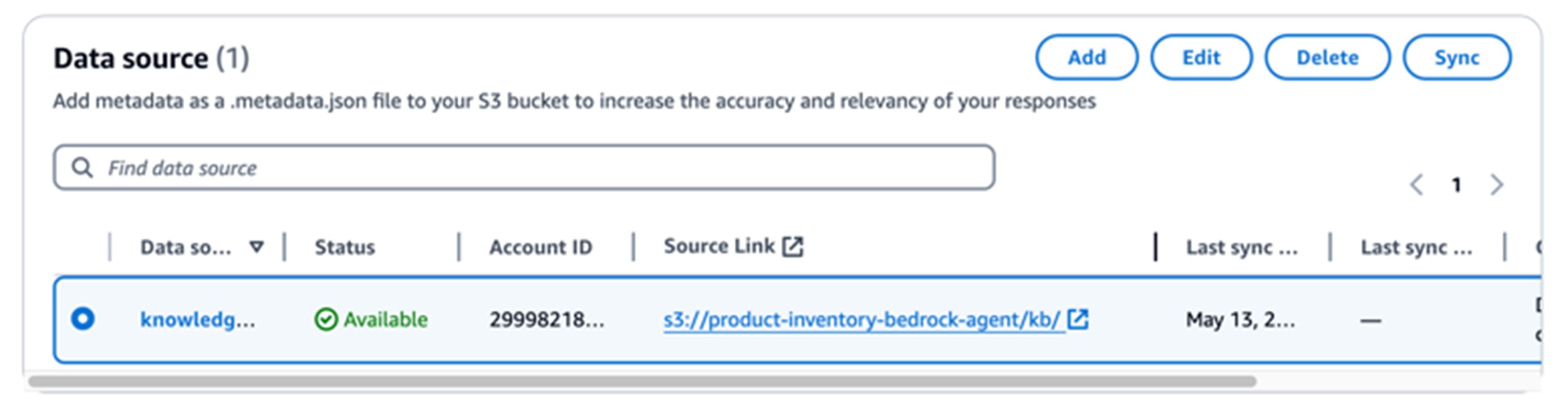 這代表當我們從 Knowledge Base 中刪除同一個 S3 Bucket 中的資料時,vector database只會移除對應的 index,而不會影響到其他 data source 在 vector database 中的 index。
